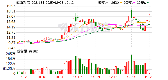 海南发展盘中涨停,已连收3个涨停板,截至9:25,该股报17.59元,换手率0.23%,成交量184.14万股,成交金额3239.02万元,涨停板封单金额为20.66亿元。连续涨停期间,该股累计上涨33.06%,累计换手率为22.67%。最新A股总市值达148.63亿元,A股流通市值141.34亿元。