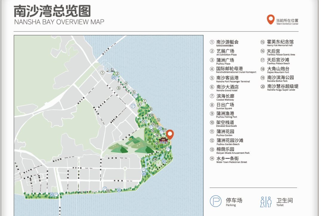 天后宫沙滩→架空栈道→“南沙Blue”打卡墙→蒲洲花园沙滩和瞭望台→蒲洲渔港→南沙大酒店段慢行道