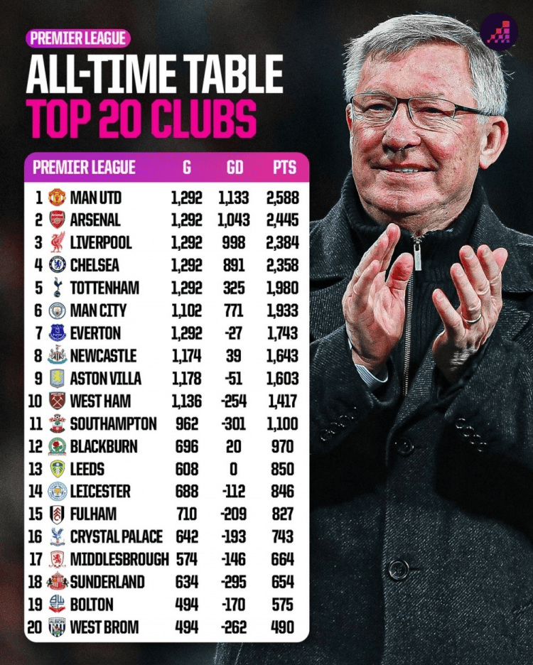 虎扑02月16日讯 Opta Analyst统计了英超历史总积分榜目前市场上好的配资公司,详情如下:
