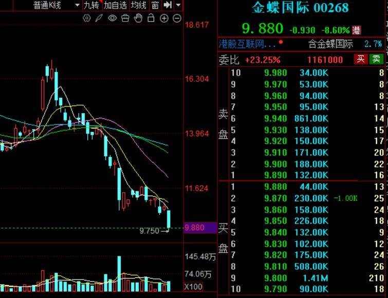 中国香港软件板块表现疲软,金蝶国际作为科技股指数领头羊,早盘股价一度重挫近10%;AI技术企业商汤科技一度跌超6%,金山软件跌约4%,均显著拖累市场情绪。